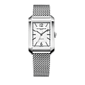 De Hampton 10672 combineert een chique esthetiek met de luxe verfijning van de Zwitserse horlogemakerij. Dit rechthoekige horloge heeft een opaalkleurige en gekorrelde zilverkleurige wijzerplaat. Het uurwerk is gemonteerd op een verwisselbare, geïntegreerde Milanese gepolijste roestvrijstalen band die je outfit een unieke vintage look geeft.
