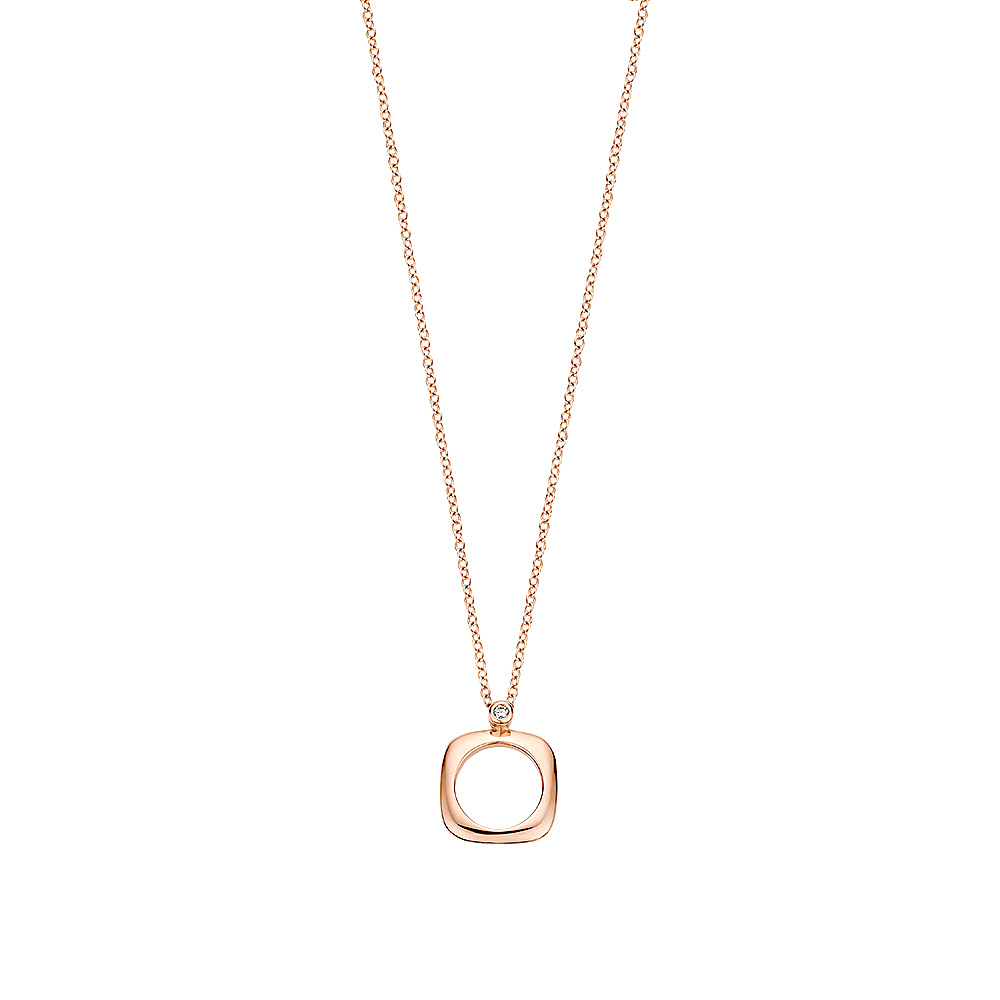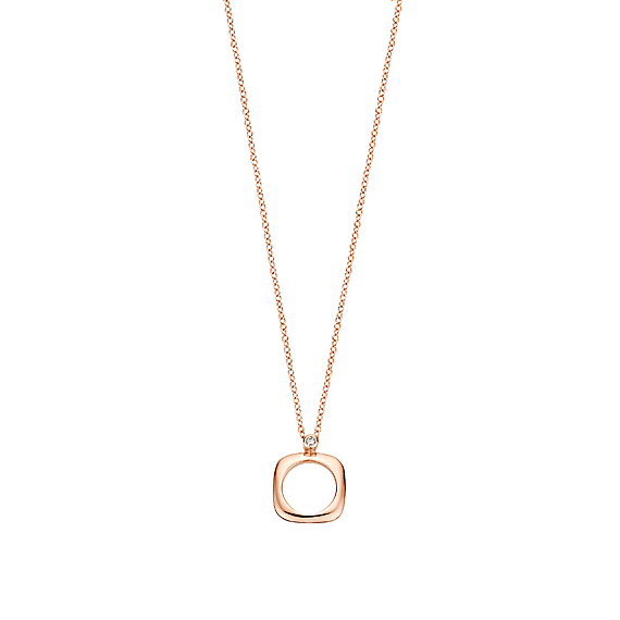 Deze Elements-hanger is vervaardigd uit 18kt roségoud en afgewerkt met onze kenmerkende diamant van 0,02 ct.