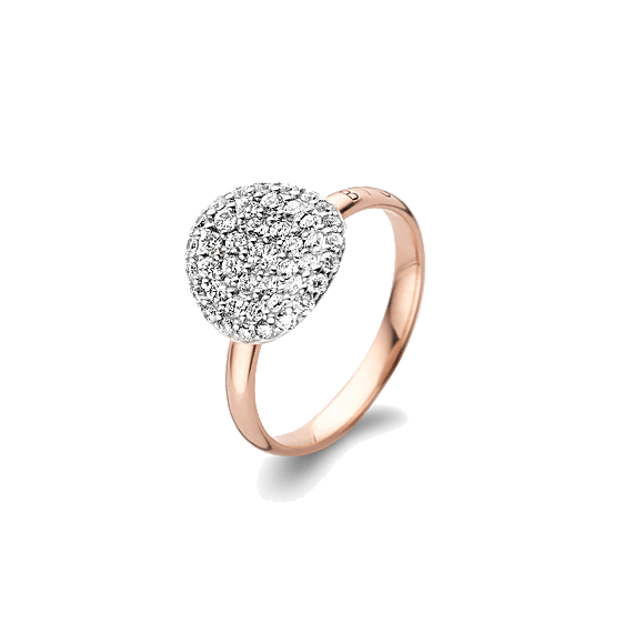 Deze Mini Waves ring is vervaardigd uit 18kt roségoud en afgewerkt met witte diamanten.
