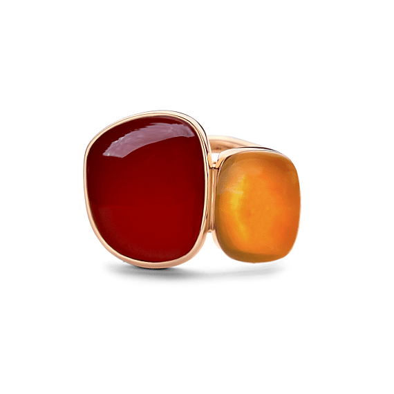 Deze Chloé x Sweety-ring is vervaardigd uit 18kt roségoud en afgewerkt met carneool, Madeira-citrien en onze kenmerkende 0,02 ct diamant.