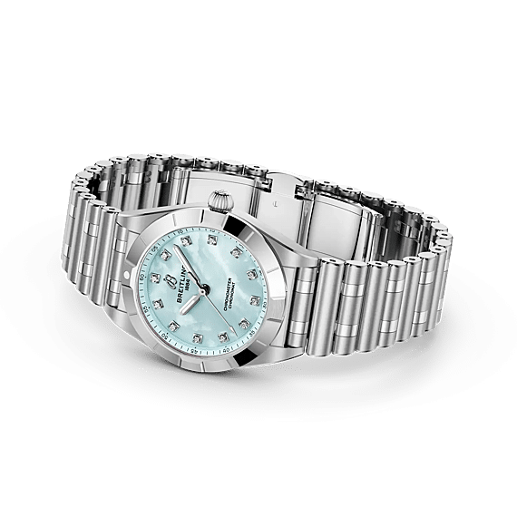 De kleine Chronomat 28 is zowel trendy als tijdloos en is het chique sporthorloge voor alle doeleinden dat je bij elke gelegenheid kunt dragen. Deze kleine wondertjes hebben veel meer te bieden dan hun nieuwe afmetingen. Verschillende tinten parelmoer en traceerbare synthetische diamanten in combinatie met subtiele retouches maken van deze horloges juweeltjes op zich. Kies je kast en de stijl van je Rouleaux armband: van roestvrij staal tot een duo van gemengde metalen, met een vlindersluiting. De Chronomat 28 wordt aangedreven door Breitling Calibre 72, een COSC-gecertificeerde SuperQuartz™ chronometer.
