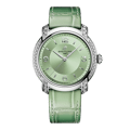 In de jaren 40 introduceerde Willy Breitling de Premier-lijn, waarmee hij de chronograaf verhief van een precisie-instrument tot een stijl-expressie, met verfijnde materialen, elegante details en een van de eerste chronografen die speciaal voor vrouwen waren ontworpen. Later zou zijn stijlvolle en charismatische vrouw Beatrice zijn muze worden en een bepalende kracht in de creatieve richting van het merk. Nu brengt Breitling die ongeschreven elegantie naar het heden met de nieuwe Lady Premier. Sculpturale silhouetten, stralende tinten, cascade-diamanten en ombré-afwerkingen kenmerken de speelse maar verfijnde designtaal. Minimalistische cijfers, ruitvormige wijzers en een sculpturale kroon versterken de juweelachtige aantrekkingskracht. De 36 mm automatische modellen combineren rijke wijzerplaten met alligatorleren bandjes met kleurverloop en worden aangedreven door het COSC-gecertificeerde Calibre 10 automatische uurwerk. Lady Premier viert vrouwen die leven met gemak, zelfvertrouwen en een vleugje plezier.