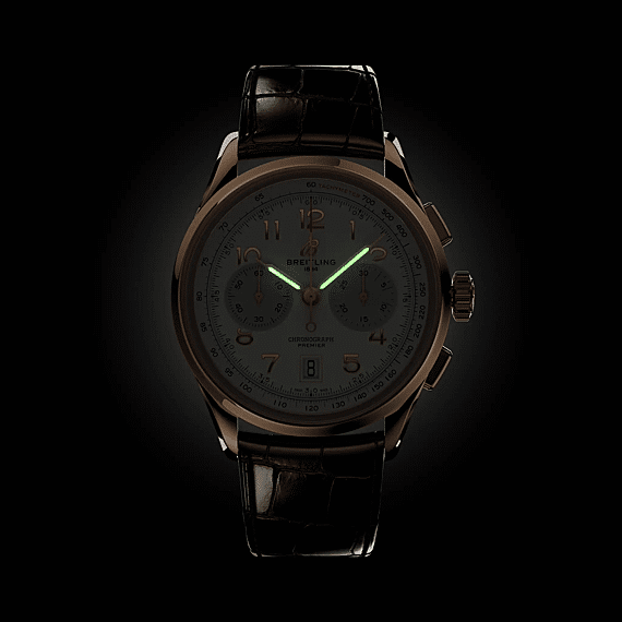 In het begin van de jaren 1940 droomde Willy Breitling al van een tijd na de oorlog, waarin nut plaats zou maken voor ongebreideld optimisme. Hij begon met het ontwerpen van een chronograaf die functioneel zou zijn, maar ook onmiskenbaar elegant en oneindig draagbaar - in zijn woorden: “de onmiskenbare stempel van onberispelijke smaak”. Hij noemde deze nieuwe lijn de Premier. Om de moderne Premier te creëren, behield Breitling de kenmerkende vintage Premier details, waaronder de gladde vaste lunette, de wijzerplaat met twee registers, de gestroomlijnde rechthoekige pushers en de toegepaste Arabische cijfers. De Premier B01 Chronograph 42 is verkrijgbaar in een reeks wijzerplaatkleuren en kastmaterialen. Hij wordt geleverd met een klassieke alligator lederen band of een slanke 7-rijige metalen armband. De Premier van vandaag voldoet ook aan de compromisloze technische normen van Willy Breitling met zijn uitzonderlijke zelfopwindende uurwerk - het COSC-gecertificeerde Breitling Manufacture Caliber 01 - ontworpen voor maximale precisie, betrouwbaarheid en functionaliteit.