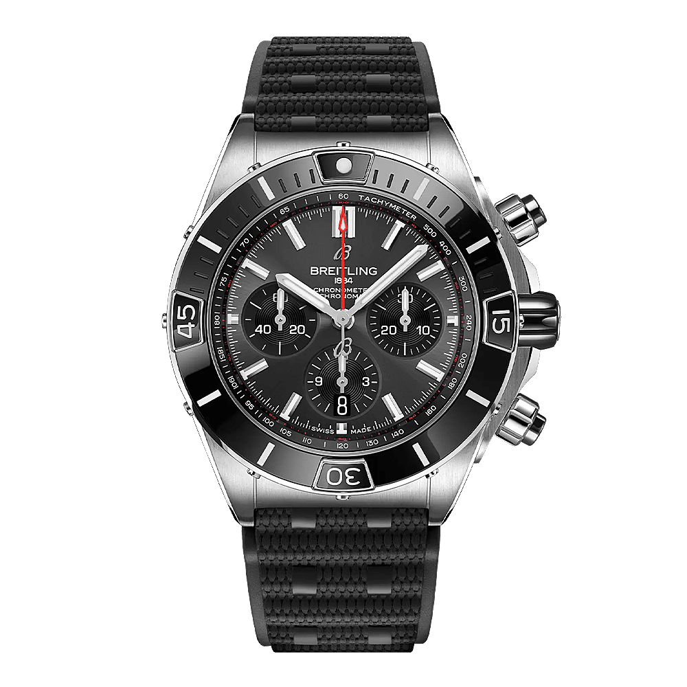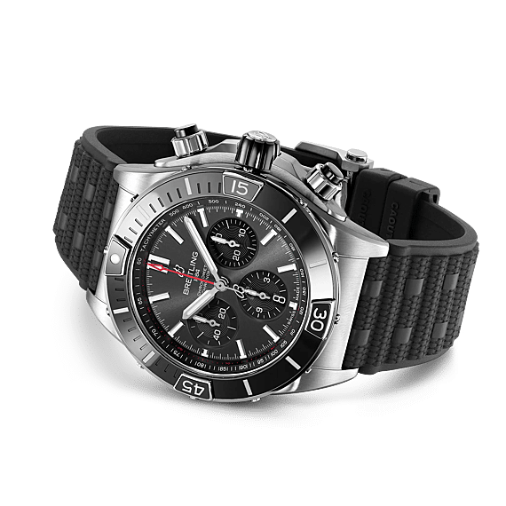 Breitling's supercharged horloge voor elke achtervolging. De Super Chronomat is geïnspireerd op de originele Chronomat uit de jaren 1980 die Breitling creëerde voor de piloten van aerobatic squadrons. De Super Chronomat is de meest gedurfde van alle Chronomat-horloges en heeft verschillende keramische inzetstukken - op de lunette, op de chronograafdrukkers en op de kroon - evenals een Rouleaux-geïnspireerde rubberen band. Toch staat dit veelzijdige sporthorloge je gevoel voor stijl niet in de weg. De Super Chronomat is verkrijgbaar in verschillende kleur- en metaalvariaties, van roestvrij staal tot 18 k rood goud. Het heeft de iconische Rouleaux armband of een rubberen Rouleaux geïnspireerde band, gekoppeld aan een vouwsluiting. De Super Chronomat B01 44 wordt aangedreven door het Breitling Manufacture Calibre 01, een COSC-gecertificeerde chronometer.