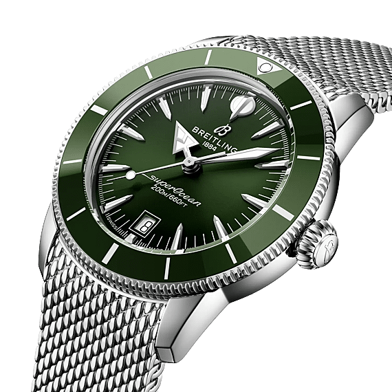Gemaakt om te bewegen tussen de golven en de waterkant. was. Toen Breitling het voor het eerst lanceerde in 1957, ging het over een andere boeg dan andere duikhorloges uit die tijd. De Ref. 1004 (een slank stuk dat alleen voor de tijd geschikt was) en Ref. 807 ('s werelds eerste speciale duikchronograaf) waren niet alleen bedoeld om de onderwaterwereld te verkennen, ze wilden er ook goed uitzien. De speer-en-pijl wijzers, geanodiseerde draaiende lunette en natuurlijk slanke proporties maakten het tot een favoriet van stijlvolle avonturiers die leefden voor de zee en de scène. Vandaag de dag vormt die filosofie nog steeds de kern van de Superocean Heritage. Het heeft de ziel van de jaren 1950, maar is ontworpen voor vandaag. De nieuwste Superocean Heritage bouwt voort op alles wat het origineel onderscheidend maakte - en scherpt het aan. Een keramisch ingelegde lunette voegt een uitzonderlijke krasbestendigheid toe, terwijl de geïntegreerde mesh-metalen of mesh-rubberen armbanden strak tegen de kast passen, vastgezet met vouwsluitingen voor een strakke, waterdichte afwerking. Een discreet datumvenster op zes uur en de originele kenmerkende wijzers - pijl voor uren, speer voor minuten - zorgen voor leesbaarheid en balans, boven of onder het oppervlak.