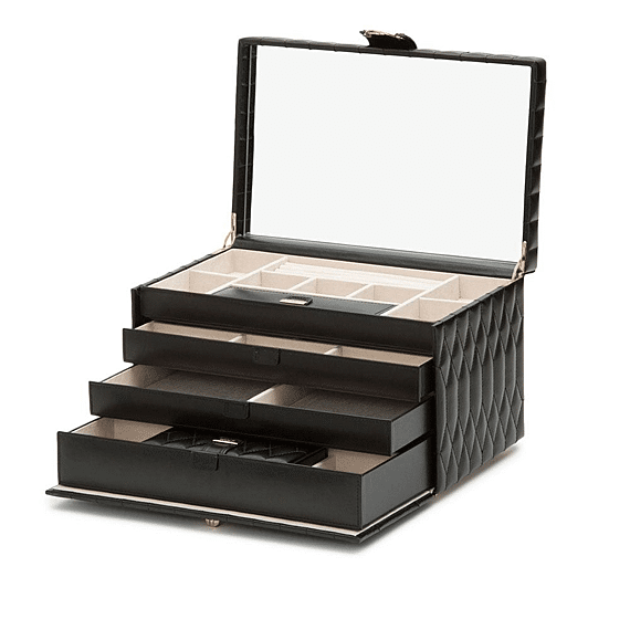 The embodiment of sophistication and style. The Caroline Large Jewelry Case is the perfect home for your precious jewelry and heirlooms.
