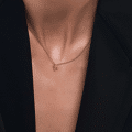 18 karaats roségouden hanger, saffier, 42 cm roloketting met karabijnsluiting