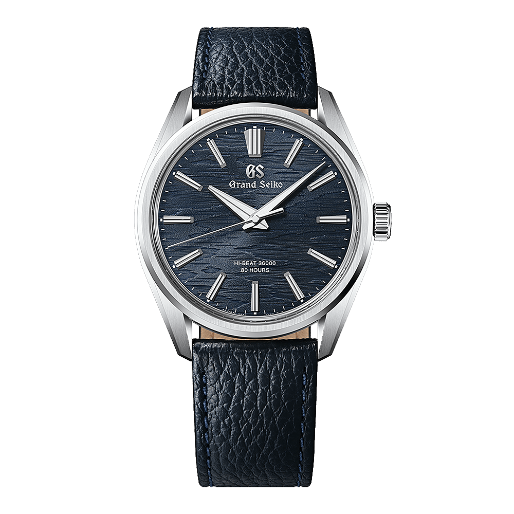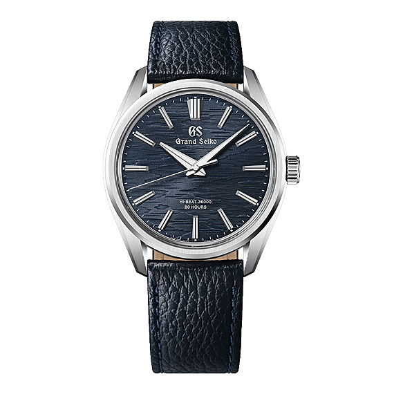 Dit mechanische horloge met handmatige opwinding en tien tikken per seconde is gebaseerd op de "Evolution 9 Style", een unieke ontwerpstijl die de essentie van Grand Seiko combineert met de esthetische gevoeligheden van Japan. De gestructureerde, marineblauwe wijzerplaat doet denken aan de bast van een witte berk, verlicht door de maan. Met een slanke roestvrijstalen kast van slechts 9,95 mm dik, heeft dit horloge een uitstraling die een Grand Seiko dresswatch waardig is. De verfijnde lunette met een smal profiel sluit perfect aan op de bandaanzetten, waarvan de strakke lijnen terug te vinden zijn in de indexen op de wijzerplaat. Het uurwerk is het Caliber 9SA4, dat met een hoge frequentie van 10 trillingen per seconde een stabiele nauwkeurigheid garandeert, en een royale gangreserve van maximaal 80 uur.