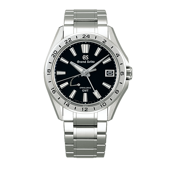 Dit Spring Drive GMT-horloge met zwarte wijzerrplaat is geschikt voor elke gelegenheid en staat zowel op kantoor als thuis prachtig.