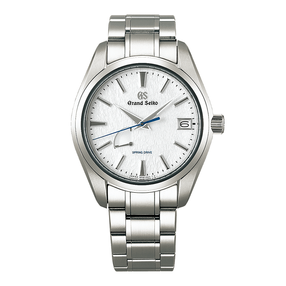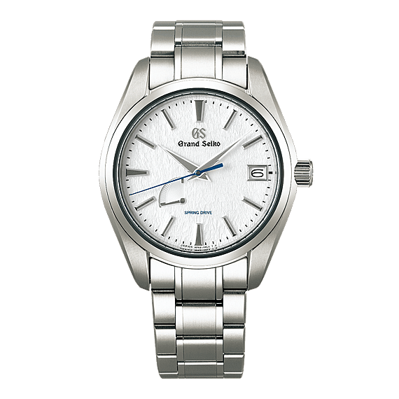 Deze Spring Drive-klassieker is vervaardigd door de vakmensen van de Shinshu Watch Studio in de prefectuur Nagano in Japan. De studio is omgeven door het Hotaka-gebergte, dat gedurende enkele maanden per jaar met sneeuw bedekt is. In de frisse, droge lucht, en wanneer de sneeuw door de wind over de hellingen wordt geblazen, krijgt deze een bijzondere, lichte en delicate kwaliteit die is vastgelegd in het subtiel gestructureerde oppervlak van de wijzerplaat. De blauwe secondewijzer van gehard staal beweegt er met de perfecte, vloeiende beweging overheen die kenmerkend is voor Spring Drive en de continue, eeuwige en prachtige aard van de tijd weerspiegelt.