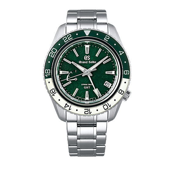 De Sport Collection Spring Drive GMT Triple Time Zone SBGE295 heeft een wijzerplaat met een patroon dat deze steile kliffen vertegenwoordigt en is uitgevoerd in een groene kleur die de schittering van de korte zomers van Hotaka vastlegt. Het horloge is voorzien van het Caliber 9R66 Spring Drive-uurwerk met GMT-functie. De draaibare lunette met 24-uurs schaalverdeling is vervaardigd van saffierglas en wordt aangevuld door een tweede 24-uurs wijzerplaatring. Samen stellen ze de drager in staat om de tijd in drie tijdzones af te lezen.