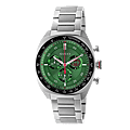 Het Gucci Interlocking-horloge wordt aangedreven door een quartz uurwerk met chronograaffunctie en combineert de historische codes van het huis met een eigentijdse uitstraling. Het model met een kast van 41 mm heeft een groene wijzerplaat met een zwarte keramische lunette en tachymeterindicatie. Het accessoire is afgewerkt met een roestvrijstalen armband en verrijkt met het kenmerkende Interlocking G-logo in een kleine secondewijzer.