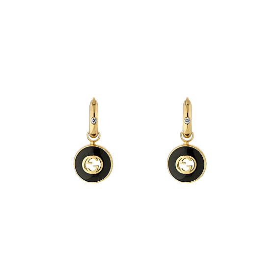 Het Interlocking G-logo verschijnt in elegante nieuwe interpretaties voor Pre-Fall 2024. Kostbare zwarte onyxsteen wordt gecombineerd met geel 18-karaats goud en verfraaid met schitterende diamanten.