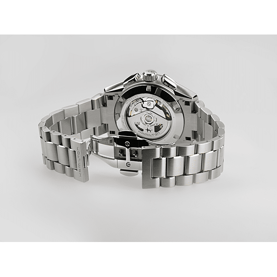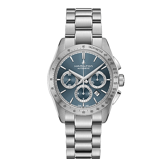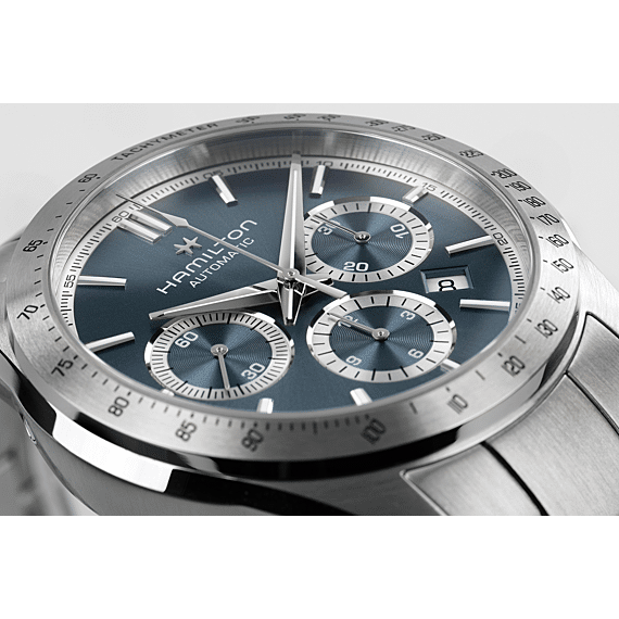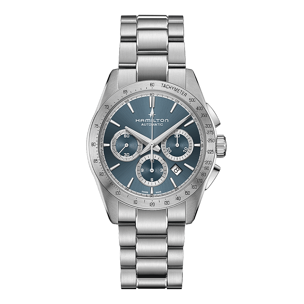 De Jazzmaster Performer lijn, die is gemaakt voor iedereen die van functioneel én stijlvol houdt, staat garant voor een krachtige, sportieve en chique uitstraling. De Jazzmaster Performer Automatic Chronograph, aangedreven door het H-31 automatische chronograafuurwerk met een gangreserve van 60 uur, is uitgerust met een roestvrijstalen kast van 42 mm, geaccentueerd door een slanke, lichtblauwe wijzerplaat en een krachtige, roestvrijstalen armband.