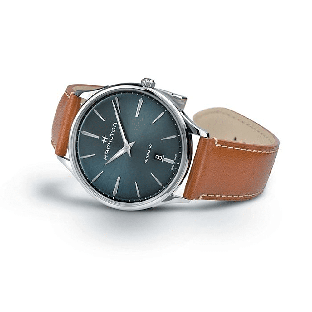 Met de Jazzmaster Thinline Automatic kunt u een Hamilton-horloge samenstellen dat helemaal bij uw stijl past. Met een keuze uit vier verschillende wijzerplaat- en bandkleurcombinaties en een uitgebreid aanbod aan bruine, zwarte en olijfgroene banden, kunt u dit mode helemaal aanpassen aan uw stemming.
