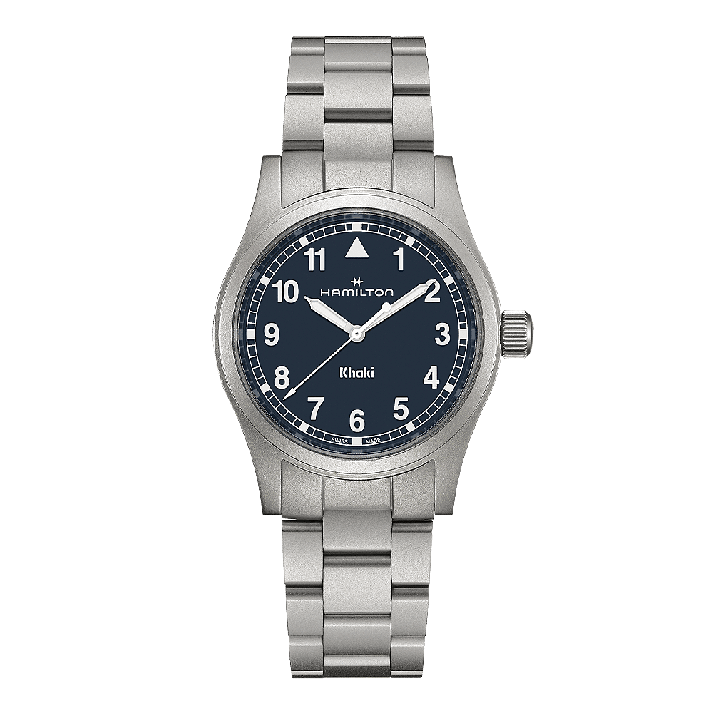 Gemaakt voor het avontuur: de Khaki Field Quartz is een betrouwbare, stevige metgezel die klaar is om op ontdekking te gaan. De Khaki Field Quartz is geïnspireerd op Hamiltons reputatie op het gebied van precisie, innovatie en gebruiksvriendelijk design en combineert een klassieke marineblauwe 38 mm wijzerplaat met een moderne metalen horlogeband.