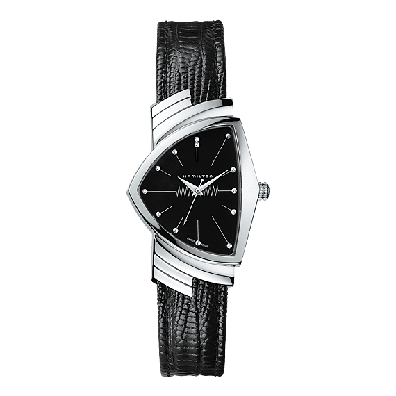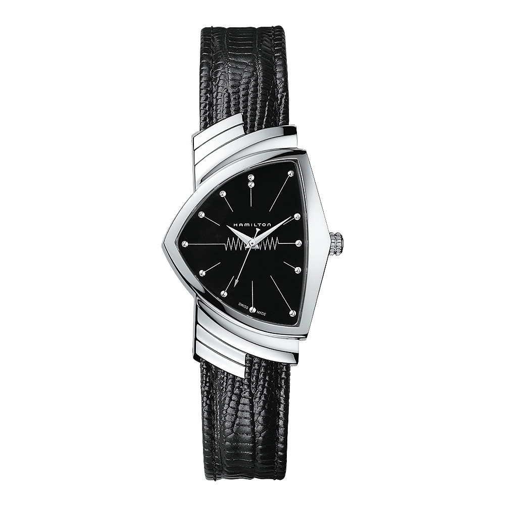Het origineel van de Ventura, die in 1957 op de markt werd gebracht, ging de geschiedenis in als 's werelds eerste elektrische, op batterijen werkende horloge. Dankzij het gedurfde en opvallende ontwerp werd dit horloge al snel een icoon en een verzamelobject. De nieuwste versie van Ventura is een eerbetoon aan het origineel en behoudt bovendien het onderscheidende schildvormige design, waarin de baanbrekende Mid-Century Modern stijlkenmerken duidelijk terugkeren.