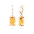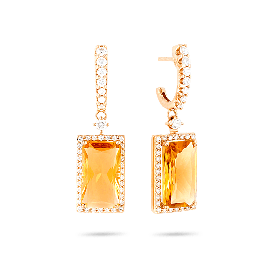 18 karaats roségouden oorbel, diamant kleur GH, zuiverheid SI 0,76 ct, citrien, 84 stenen, druksluiting
