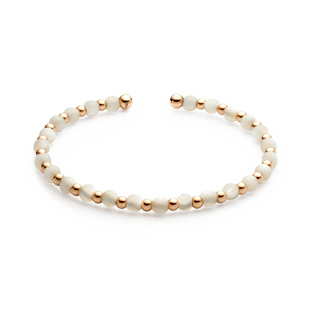 18K roségouden armband, parelmoer, 4 mm kraal, 3 mm kraal