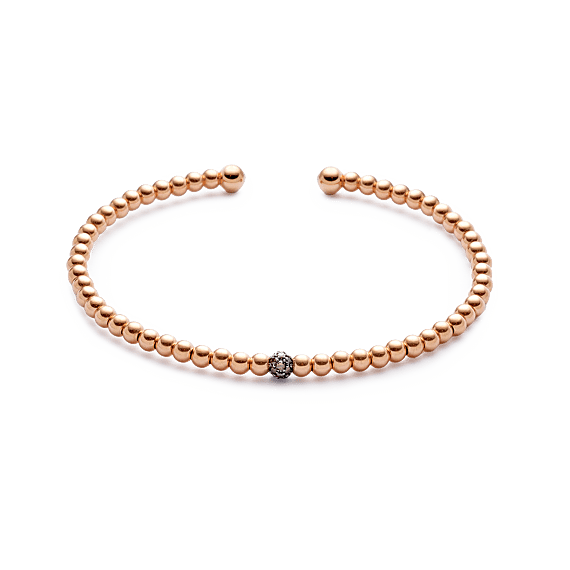 18K roségouden armband, bruine diamant 0,12 ct, 18 stenen, 4 mm kraal, 3 mm kraal