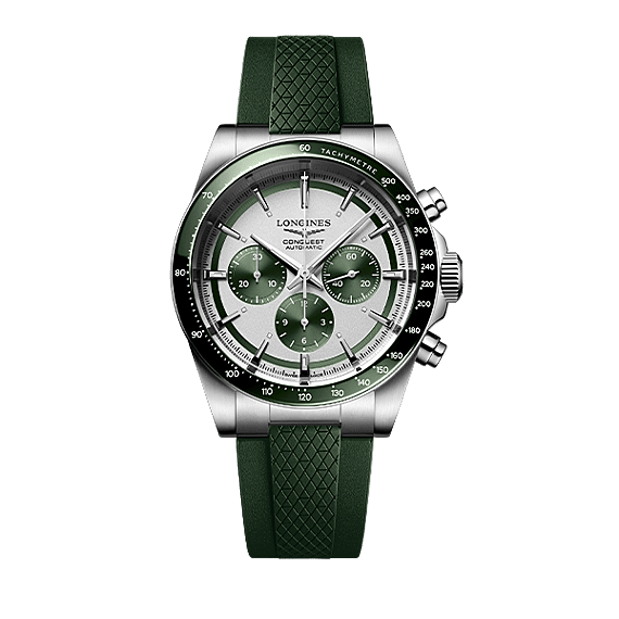 De Conquest, het ultieme alledaagse horloge, was ook de eerste Longines-collectie waarvan de naam in 1954 werd beschermd door het Zwitserse federale instituut voor intellectueel eigendom. De collectie is sindsdien geƫvolueerd op het vlak van design en technologie, maar is trouw gebleven aan haar oorspronkelijke identiteit en straalt een harmonieuze mix uit van durf, hedendaags design en sportieve elegantie. Elk Conquest Chronograph-horloge toont het onwrikbare streven van Longines naar prestaties en uitmuntende uurwerken. Deze chronografen worden aangedreven door een exclusief Longines-kaliber met een siliconen balansveer.
