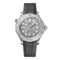 Sinds 1993 heeft de Seamaster Diver 300M een legendarische reputatie. De moderne collectie van vandaag de dag wordt gekenmerkt door het beroemde oceaanerfgoed, dat werd geactualiseerd met de meest geavanceerde innovaties en designs van OMEGA.Dit 42 mm model is vervaardigd uit roestvrij staal en is voorzien van een bezel van grade 5 titanium met een lasergravure van een duikschaal in positief reliëf en één stip witte Super-LumiNova op 12 uur.PVD roestvrij staal wordt gebruikt voor de geborstelde wijzerplaat en de gepolijste skeletonwijzers en -uurmarkeringen, die opgevuld zijn met witte Super-LumiNova. Andere markeringen, zoals het OMEGA logo, zijn in het zwart aangebracht.Het horloge wordt gecombineerd met een geïntegreerde grijze rubberen band met een vouwsluiting en wordt aangedreven door het OMEGA Co-Axial Master Chronometer kaliber 8806, dat te zien is door het saffierglazen kastdeksel.