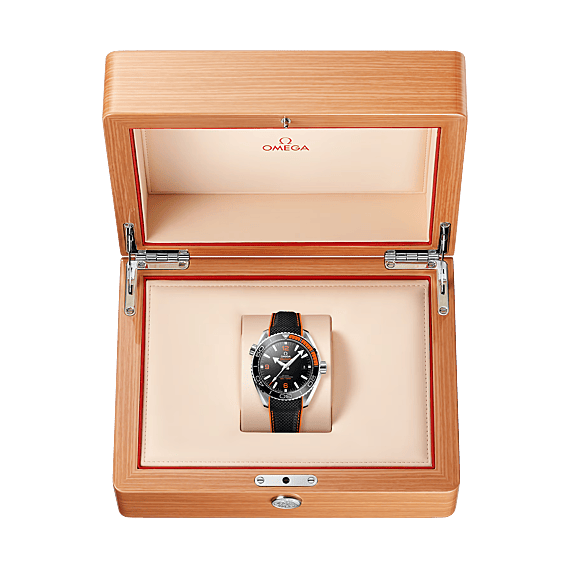 Met zijn maritieme erfgoed in het achterhoofd lanceerde het merk in 2005 zijn Planet Ocean-lijn. Het stijlvolle ontwerp van OMEGA Seamaster Planet Ocean 600M Master Chronometer brengt hulde aan OMEGA’s lange ervaring en uitzonderlijke vakmanschap op het gebied van duikhorloges.Dit model met krasvast saffierglas heeft een gepolijste zwarte keramische wijzerplaat, voorzien van Arabische cijfers en een datumvenster op 3 uur. Op de 43,5 mm roestvrijstalen kast zit ‘s werelds eerste zwarte keramische bezel met oranje rubber. De duikschaal op de bezel is gemaakt van Liquidmetal™.Het model heeft ook een geschroefde kast met gegolfd motief op de achterzijde en een zwarte, gestructureerde rubberen horlogeband met oranje stiksels en een oranje voering.De OMEGA Seamaster Planet Ocean 600M Master Chronometer is waterbestendig tot 600 meter / 2000 feet / 60 bar en is voorzien van een heliumventiel. Het horloge wordt aangedreven door OMEGA’s Master Chronometer kaliber 8900, dat te zien is door de transparante achterzijde van de horlogekast. Om de status van Master Chronometer te verkrijgen, heeft dit model de 8 strenge tests van METAS (het Zwitserse Federale Instituut voor Metrologie) doorstaan.