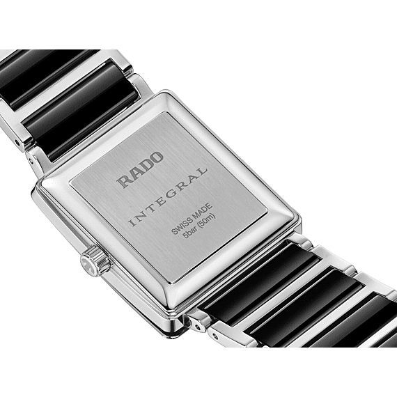 Deze minimalistische tweekleurige variant op de Integral-serie, een klassieke horlogelijn van Rado, wordt gepresenteerd in een nieuw middelgroot formaat. De gepolijste zwarte middelste schakels van de armband bieden ongeëvenaard draagcomfort dankzij hun natuurlijke lichtheid, een slanke kast sluit nauw aan om de pols en een zwarte metallisatie op het gebogen, afgeschuinde saffierglas dat van rand tot rand loopt, omlijst een gelakte wijzerplaat. Vier diamanten indexen – Top Wesselton VS-SI, volledig geslepen edelstenen – zorgen voor een subtiele schittering. Binnenin zorgt een R279-kaliber PreciDrive-kwartsuurwerk voor onfeilbare betrouwbaarheid. Een intrigerend ontwerp dat een toonbeeld is van ingetogen stijl.