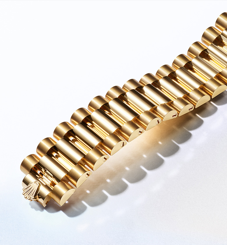 De Day-Date 40 en de Day-Date 36 worden aangebracht op een President-band. De President-band met zijn driedelige schakels werd in 1956 gecreëerd voor de lancering van de prestigieuze Oyster Perpetual Day Date en is uitsluitend gemaakt van 18 kt goud of 950 platina. Hij is nog steeds voorbehouden aan de Day Date en de Datejust van edelmetaal. De band is voorzien van een elegante blinde Crownclasp-vouwsluiting en door Rolex ontworpen, gepatenteerde keramische inlegschijven binnen in de schakels, die extra soepelheid en duurzaamheid bieden.