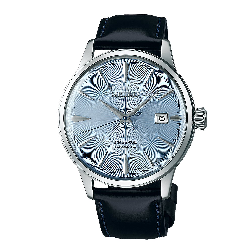 Presage Heren Autom Staal Zwart Leer SRPB43J1