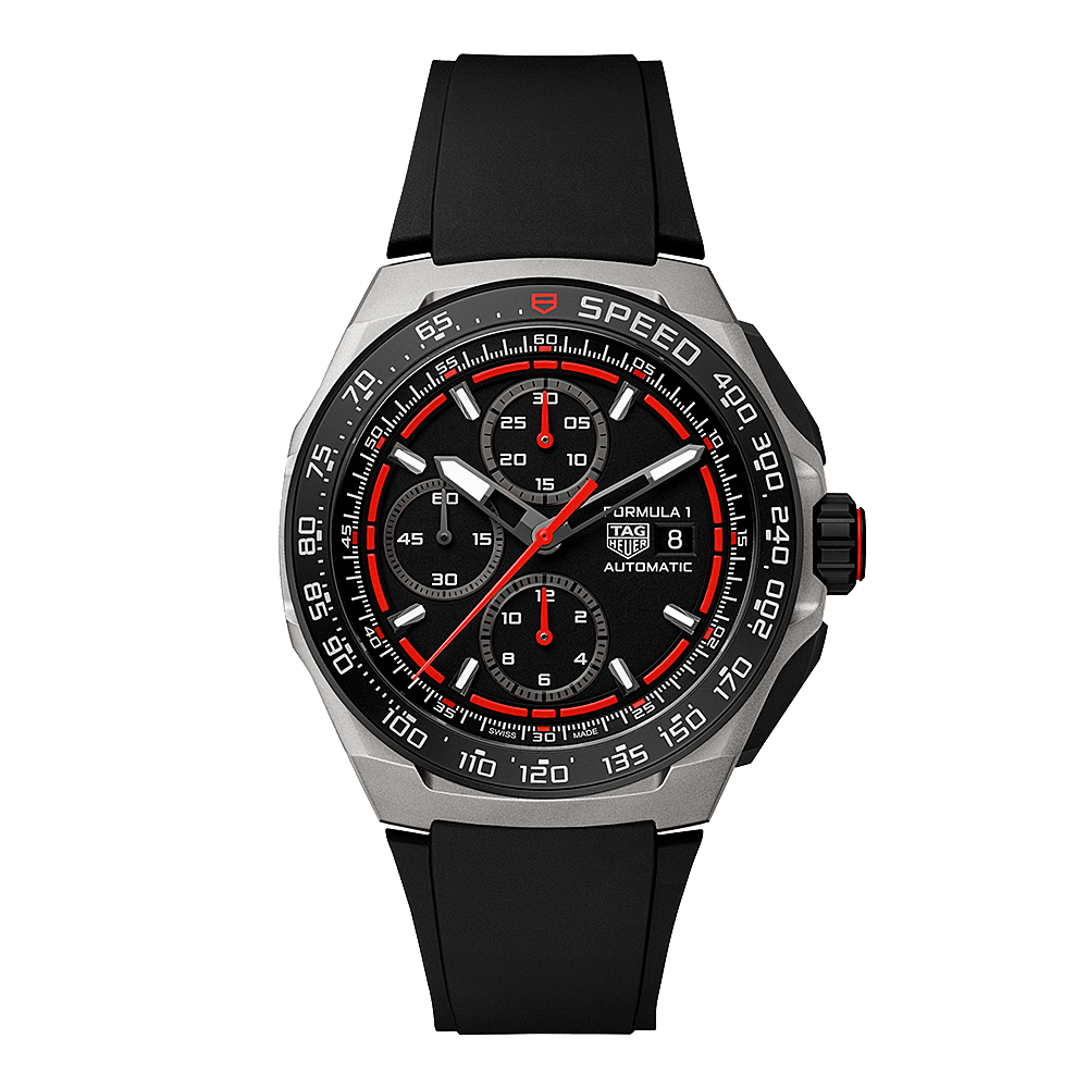 Ontworpen voor de durfals brengt de TAG Heuer Formula 1 Chronograph in 44 mm de racesfeer naar de pols. De titanium grade 2 kast, rode accenten en robuuste rubberen band creëren een horloge dat klaar is voor elke uitdaging.