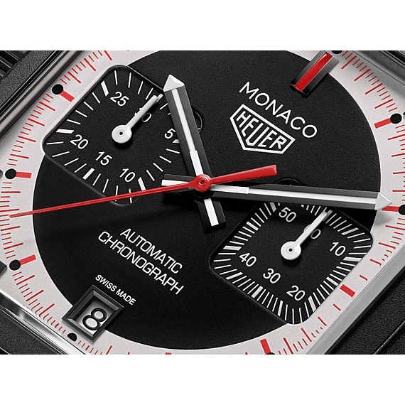 De TAG Heuer Monaco Chronograph Stopwatch, die de esthetiek van de originele TAG Heuer stopwatches uit de jaren '60 en '70 nieuw leven inblaast, brengt de spanning van het racecircuit naar de pols. Dit limited-edition chronograaf in met zwart DLC gecoat titanium is een eerbetoon aan TAG Heuer's rijke tijdmeet-erfgoed en combineert het iconische Kaliber 11 met een resoluut vintage-geïnspireerd design.