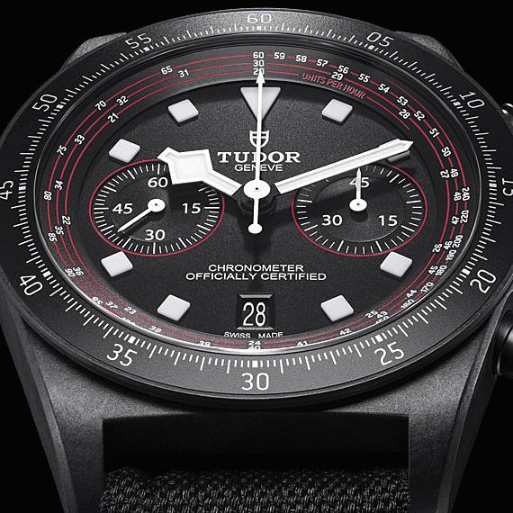 Het is geen geheim dat de snelste fietsen van koolstofvezel zijn gemaakt, en daarom heeft TUDOR gekozen voor koolstofcomposiet voor de kast van de Pelagos FXD Chrono "Cycling Edition". Het horloge is ontworpen met gedurfde renners in gedachten, dus is titanium gebruikt in andere onderdelen van de kast om ervoor te zorgen dat het zowel licht als robuust is.