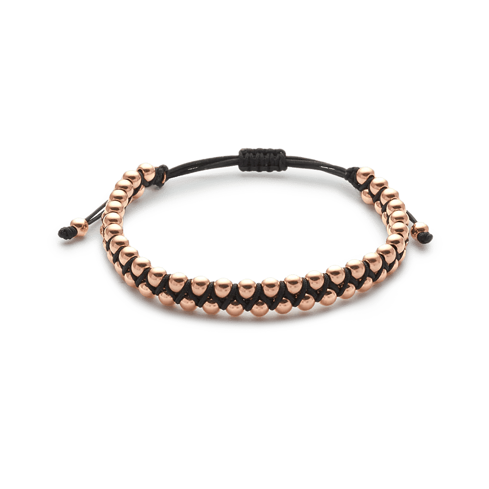 18K roségouden armband, 4 mm kraal, verstelbaar nylon koord van 15 cm tot 25 cm