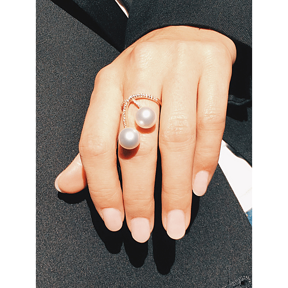Als noten op een muziekblad zwiert de parelring over de vinger. Met stralende Akoya-parels bovenaan en prachtige diamanten langs de geelgouden ring is dit de perfecte keuze voor de juwelenliefhebber die op zoek is naar iets bijzonders en buitengewoons.